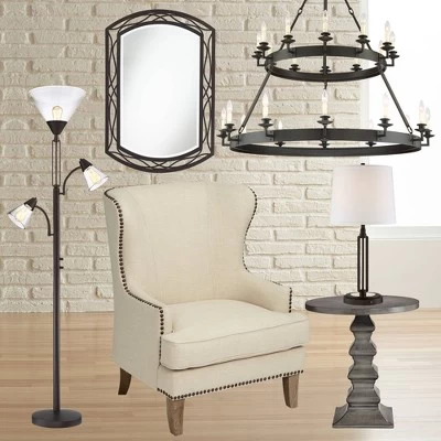 Franklin Iron Works Warwick Industrial Torchiere Floor Lamp With Side Lights 71 1/2″ Tall Tiger Bronze LED Clear Seedy Glass For Living Room Reading