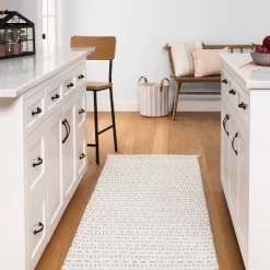 Create a charming, farmhouse-inspired feel in your master or guest bedroom with this Linen-Blend Bed Skirt from Hearth & Hand™ with Magnolia. Designed in a charming and versatile off white/sour cream shade, this linen-cotton blend bed skirt provides 15 inches of drop at the foot and both sides of a bed to create a neat look that also helps cover any items you may be storing under the bed. The plain weave construction and slightly rustic-looking hem provide a casual and lovely look, and the corners gather neatly for a clean finish you’ll love.