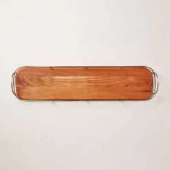 32″ Wooden Decorative Tray With Metal Trim Brown/Brass – Hearth & Hand⢠With Magnolia