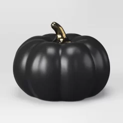 Set Of 3 Small Ceramic Halloween Pumpkins With Gold Stem – Thresholdâ˘